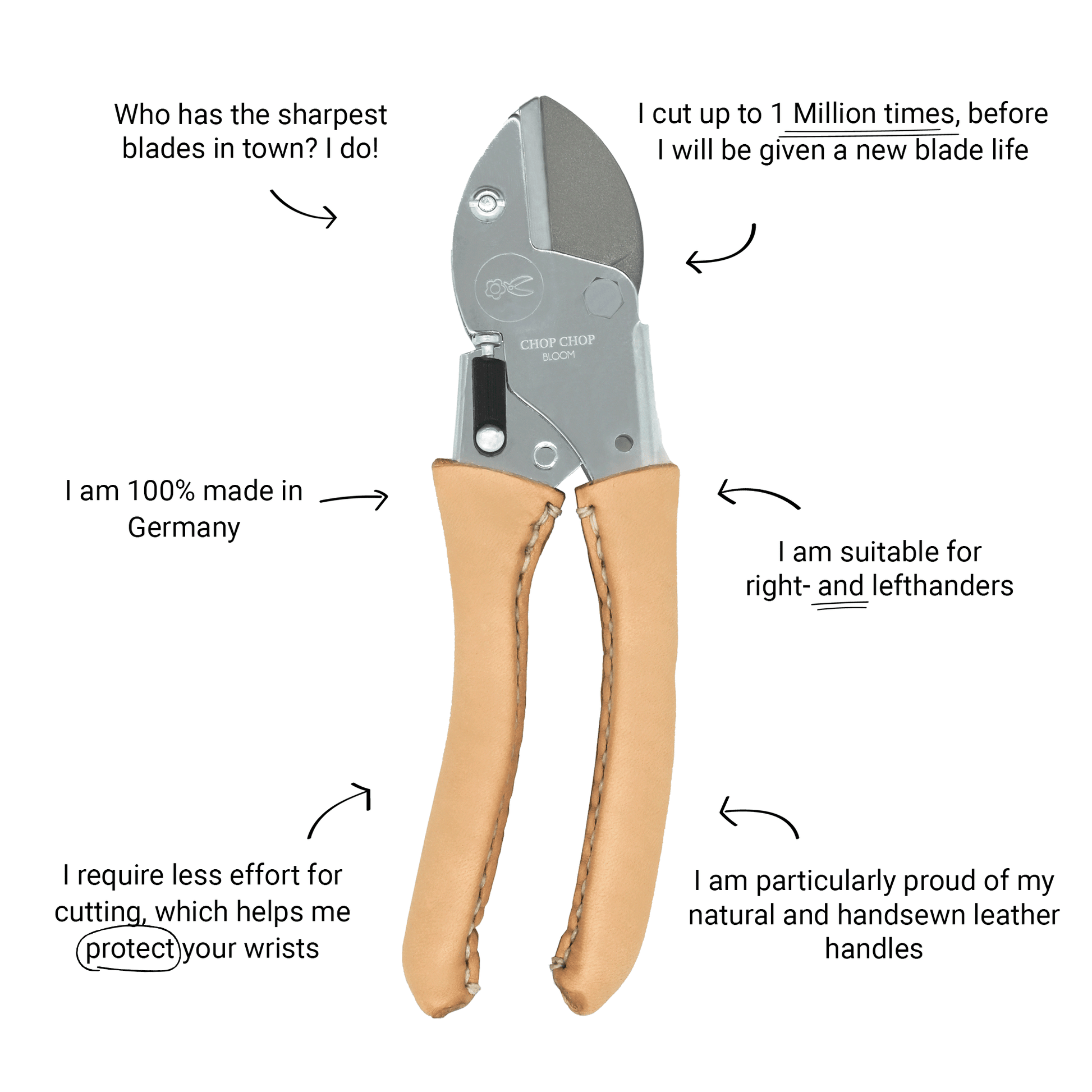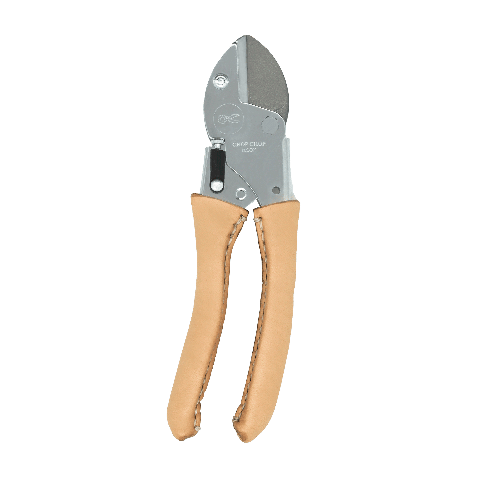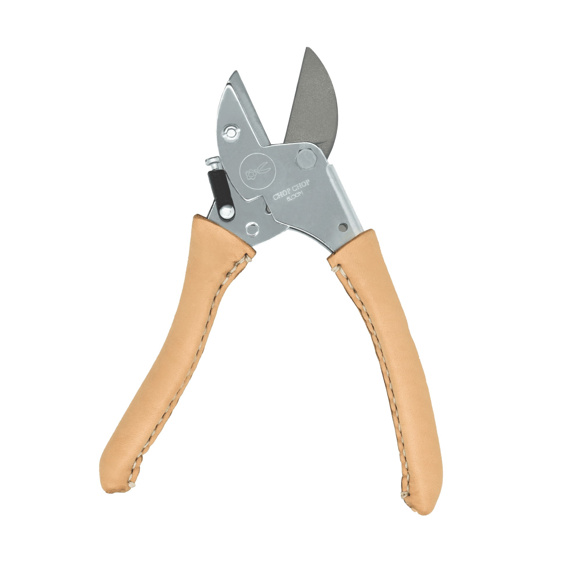 High performing, durable garden shears with hand stitched blank leather handles.